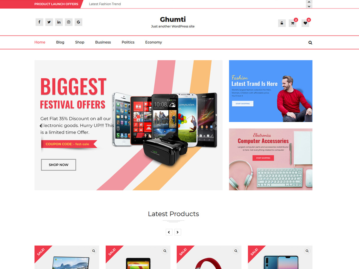 Ghumti – Free WooCommerce Widgetized Theme